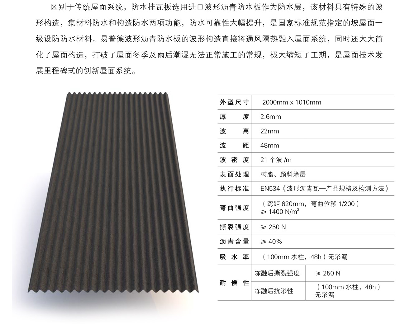 借鑒歐洲坡屋面防水理念,將平面防水改為立體防水,采用新型防水板材料,將材料防水和構(gòu)造防水于一身,配合屋面系統(tǒng)組件,實(shí)現(xiàn)全天候全干作業(yè)。節(jié)省了屋面各類保護(hù)層次,打破了屋面冬季及雨后陰濕無(wú)法施工的常規(guī),縮短了工期,提升系統(tǒng)安全性能。